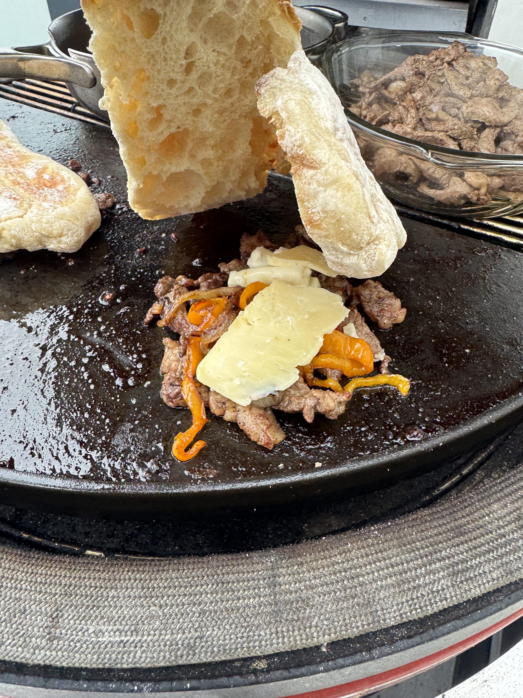 Next came the meat. Ribeye, sliced whisper-thin before cooking, not after. Slicing first before griddling is non-negotiable, as determined by a double-blind taste test involving several hungry friends (The sacrifices we make for culinary science). The pre-sliced meat, allowed to cook in its own juices alongside slowly caramelising onions, developed a tenderness and depth of flavour that its post-cooked counterpart simply couldn't match.